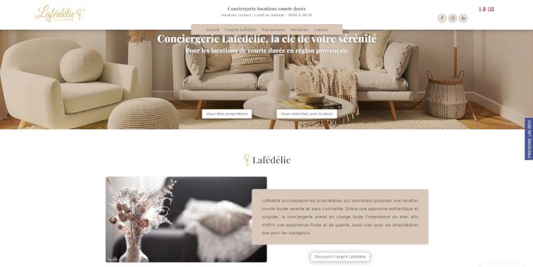 La Conciergerie Lafédélie bénéficie aujourd’hui d’une image harmonieuse et haut de gamme, en parfaite adéquation avec ses valeurs : authenticité, confiance et qualité. L’ensemble des supports — logo, site et flyer — contribue à renforcer sa notoriété et à inspirer la confiance de ses clients et partenaires.